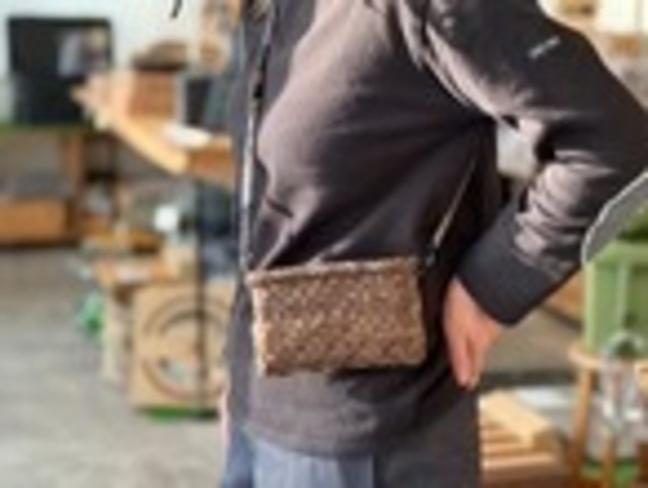 サコッシュの素材は胡桃樹皮(表側)