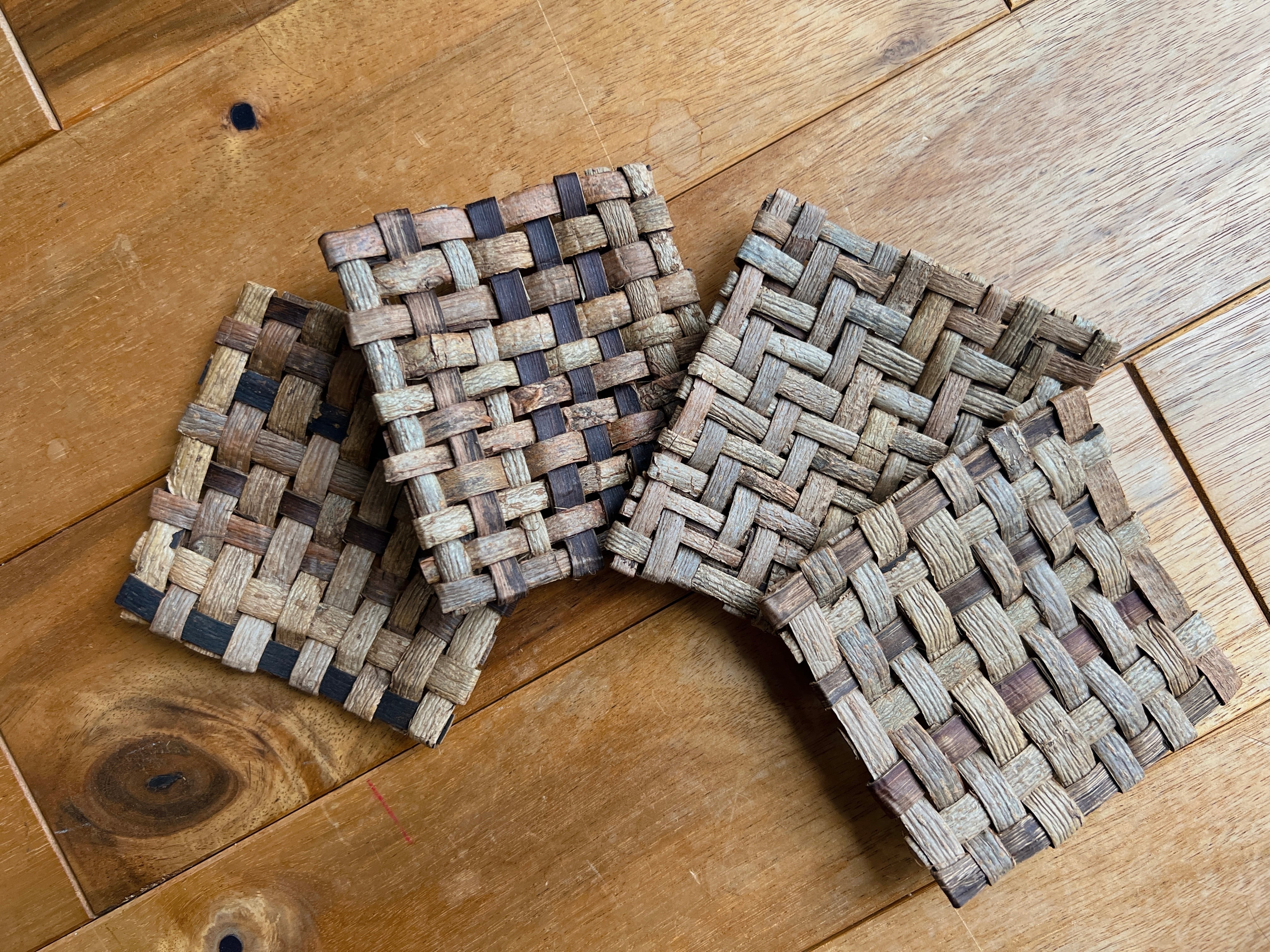 自然のものなので歪みもありますが、コップやマグカップを置くのに支障がありません。歪みありのコースターたちをまとめてリーズナブルな価格にしました。