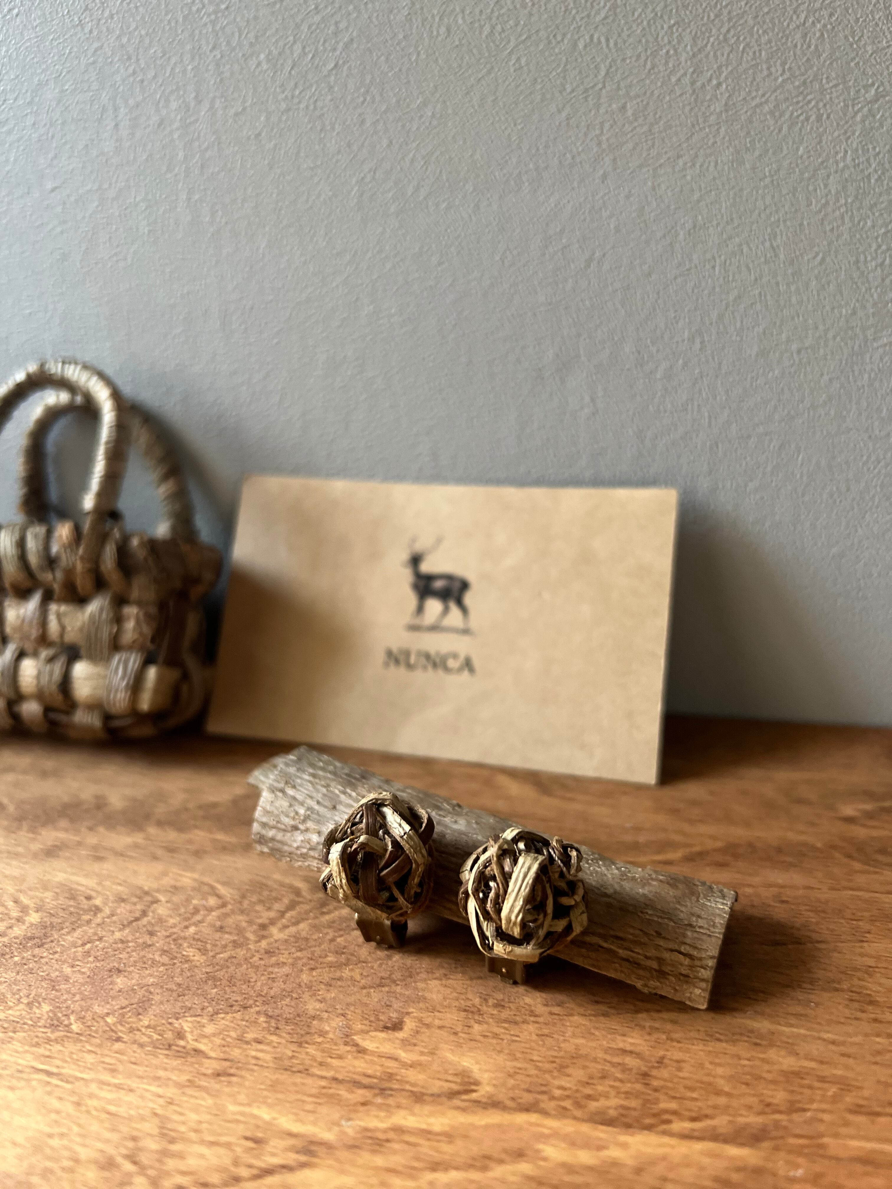 樹皮を紐のようにして編み鹿革と組み合わせました